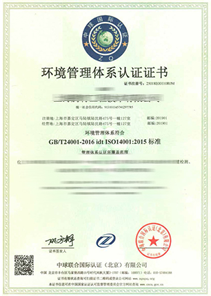 環(huán)境管理體系認(rèn)證證書(shū)